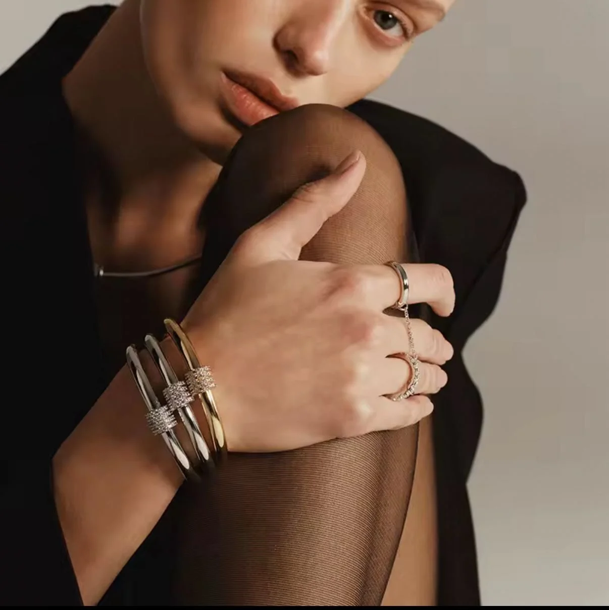 Crafted with a smooth, structured silhouette, this piece blends modern edge with timeless elegance, making it a standout addition to any jewelry collection.